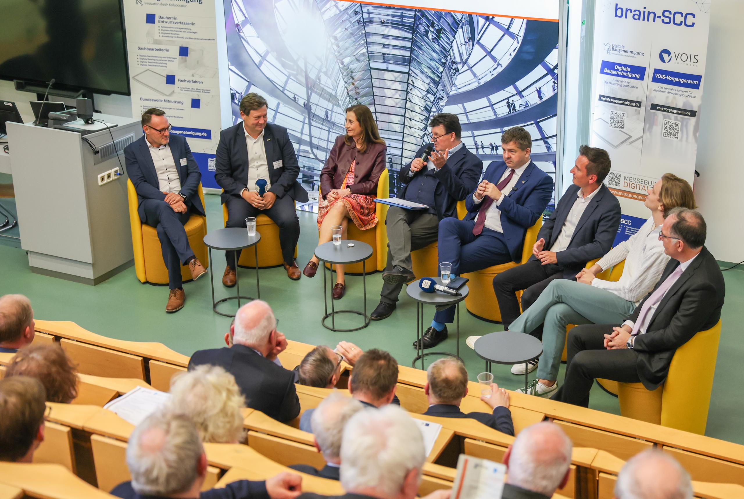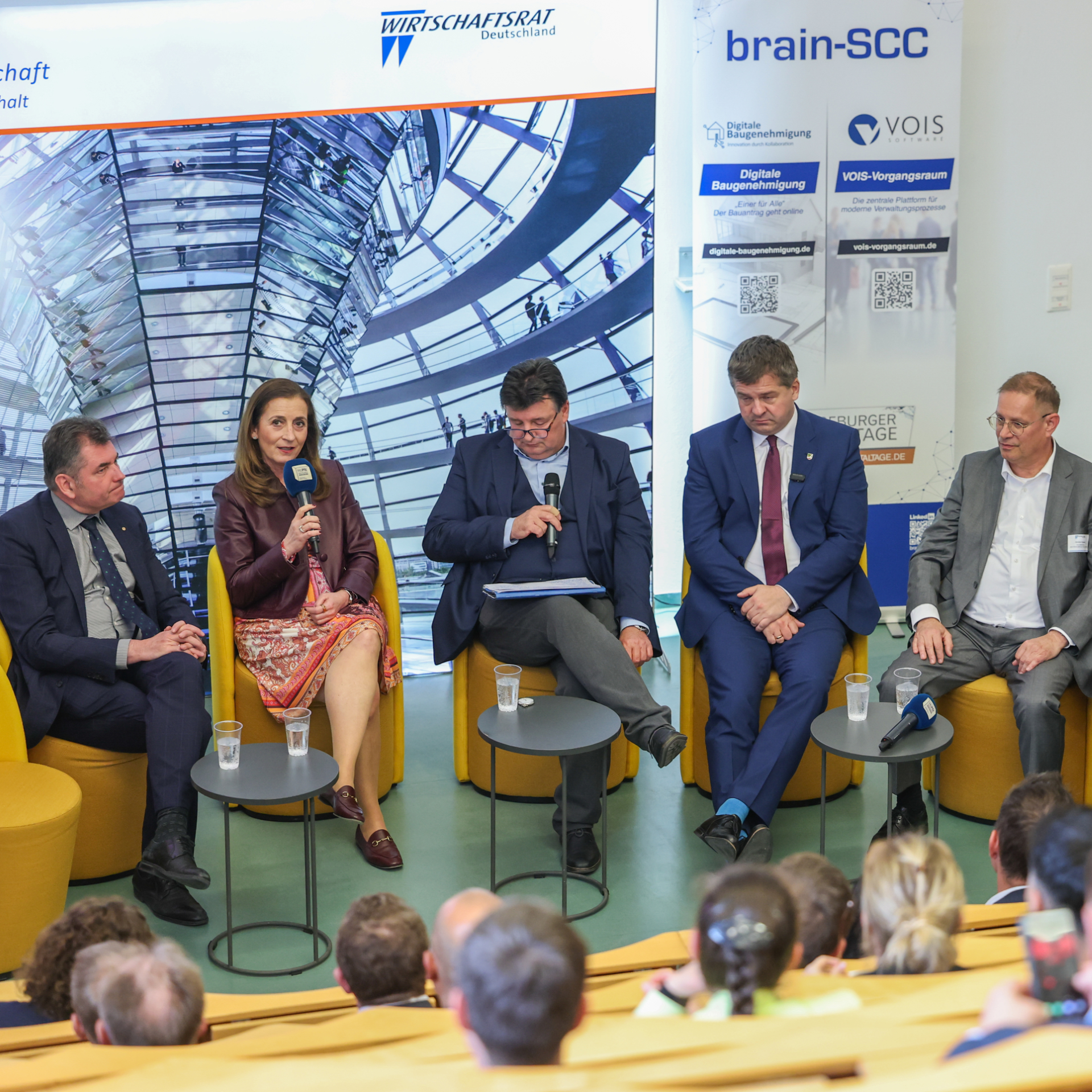 Zwei Podiumsdiskussionen beleuchteten im Anschluss die Themenbereiche „Wirtschaft“ und „Wissenschaft“. Unter der Moderation von Prof. Dr. Thomas Brockmeier diskutierten hochrangige Vertreterinnen und Vertreter aus Politik, Wirtschaft und Wissenschaft, darunter Ministerpräsident Sven Schulze, über aktuelle Herausforderungen und Perspektiven für den Wirtschaftsstandort Sachsen-Anhalt.